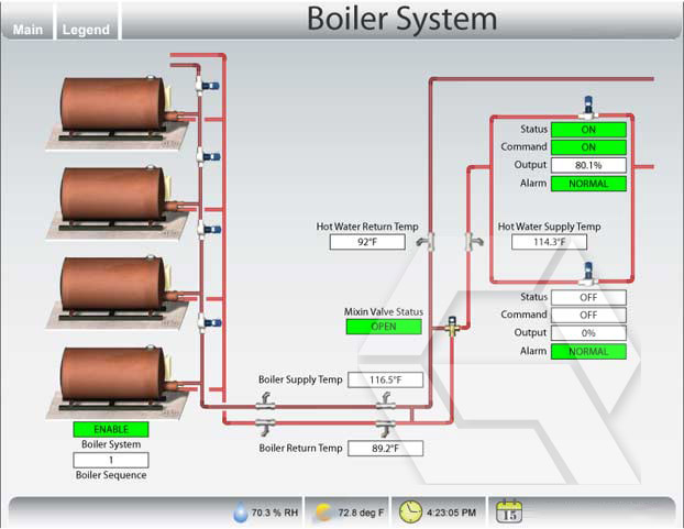 Old BMS Graphic from the early 2000’s showing boiler control in a Melbourne Building in Collins Street